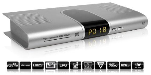 Mit der TechniBox HD VAC bietet TechniSat einen HDTV-fähigen DigitalSat-Receiver mit maximaler Funktionsbreite und bestem Benutzerkomfort. Die Fähigkeit zur Aufzeichnung digitaler Programme über USB 2.0 und die mobilen Einsatzmöglichkeiten dank 12V-Stromversorgung machen die TechniBox HD VAC ungewöhnlich flexibel. Mit ihrem integrierten Viaccess-Entschlüsselungssystem empfängt sie neben freien SD- und HDTV-Programmen auch z. B. die grundverschlüsselten Programme des SF - und ist damit für Zuschauer in der Schweiz ideal ausgestattet.Mit dem integrierten Viaccess-Entschlüsselungssystem empfängt die TechniBox HD VAC neben freien SDTV- und HDTV-Programmen u. a. auch die grundverschlüsselten Programme des Schweizer Fernsehens SRG und das Programmangebot des französischen BIS-Pakets. Damit ist die TechniBox HD VAC sehr gut ausgestattet - ideal ist sie vor allem für Zuschauer in der Schweiz.