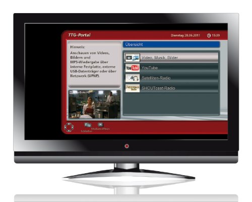 - Electronic Program Guide (EPG), HDTV Videotext, Internet-Medienangebote (ARD Mediathek, YouTube, u.a.), Internet-Radio (Shoutcast),